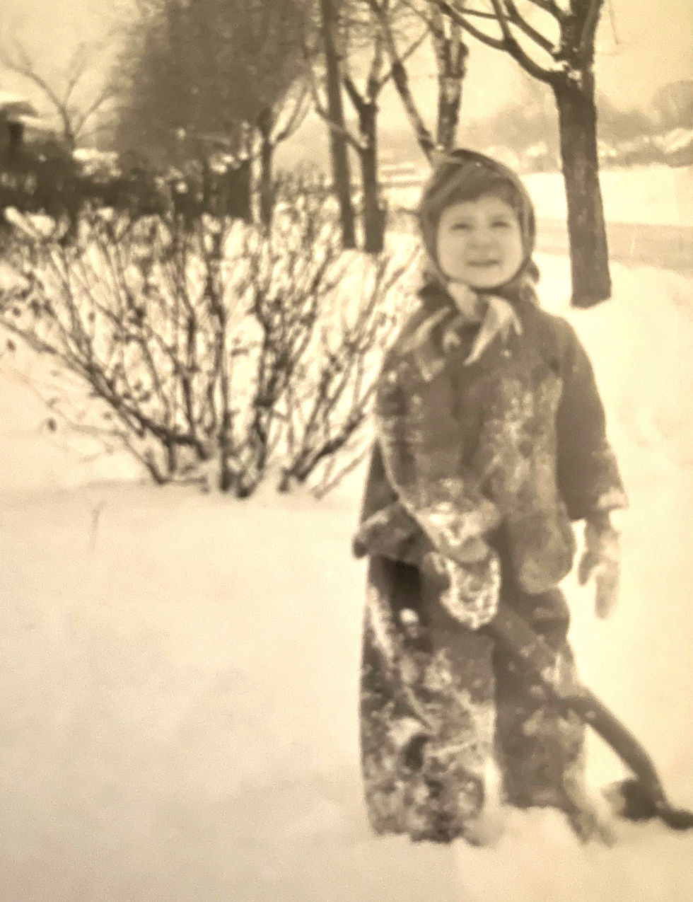 Fast forward to my own winter pictures. On Dec. 23, 1948, as a three-year-old, I am holding a snow shovel and beaming at the camera in a rigged-up outfit, with too-big pants and jacket, all matted with snow.